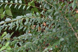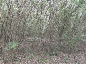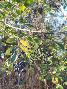 A very popular landscaping plant and one of the most prevalent invasive plants in the southeastern U.S. This deciduous shrub is native to China, Taiwan and Vietnam. The leaves are small and opposite. The flowers appear in spring and are white, with a four-lobed corolla. Its berries or “drupes” are a dark purple. Privet is a successful invasive species because of its ability to outcompete and therefore displace native vegetation. It is sold commercially including various cultivars but should be avoided.