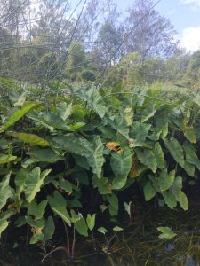 Colocasia esculenta can form dense stands outcompeting native plants.